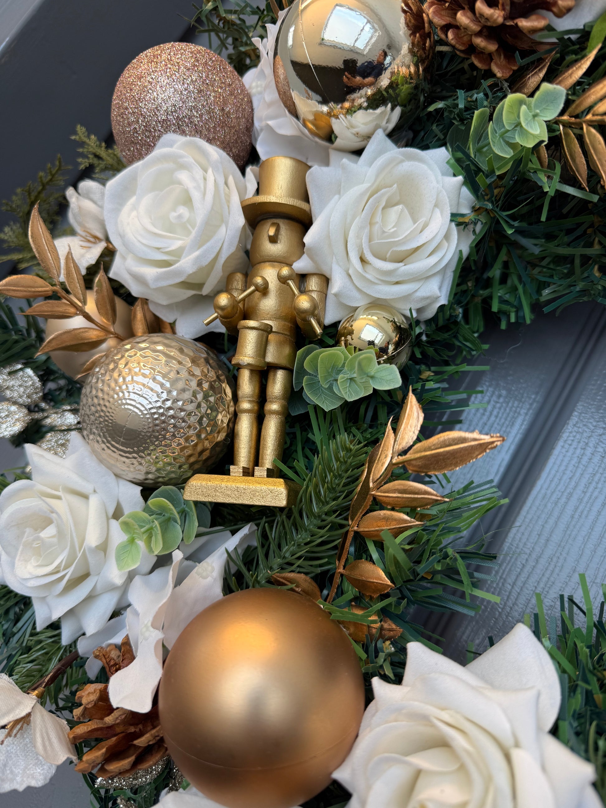 Cream, Gold and White Christmas Nutcracker Wreath