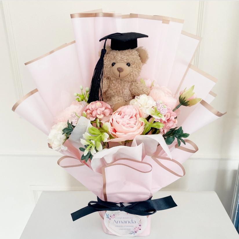 Our beautiful wrapped Teddy Flower Bouquets are the perfect keepsake Graduation Gift.